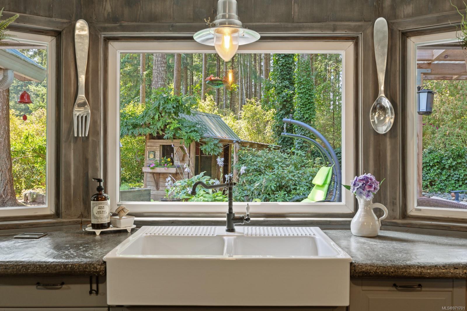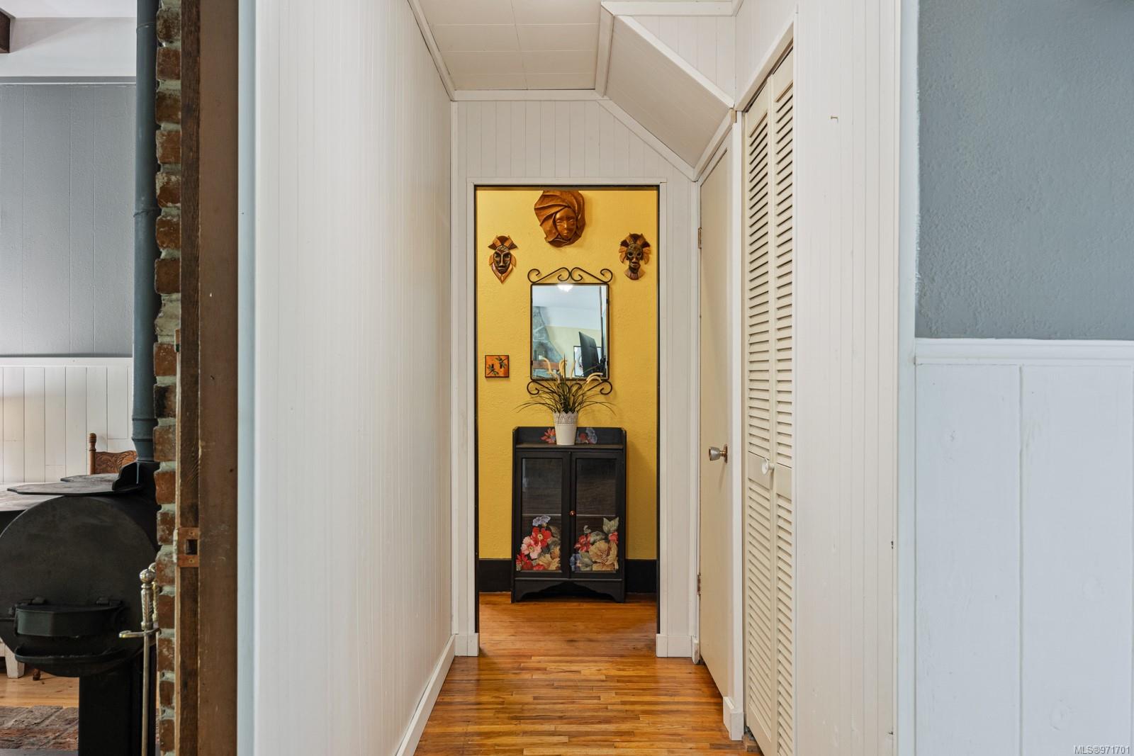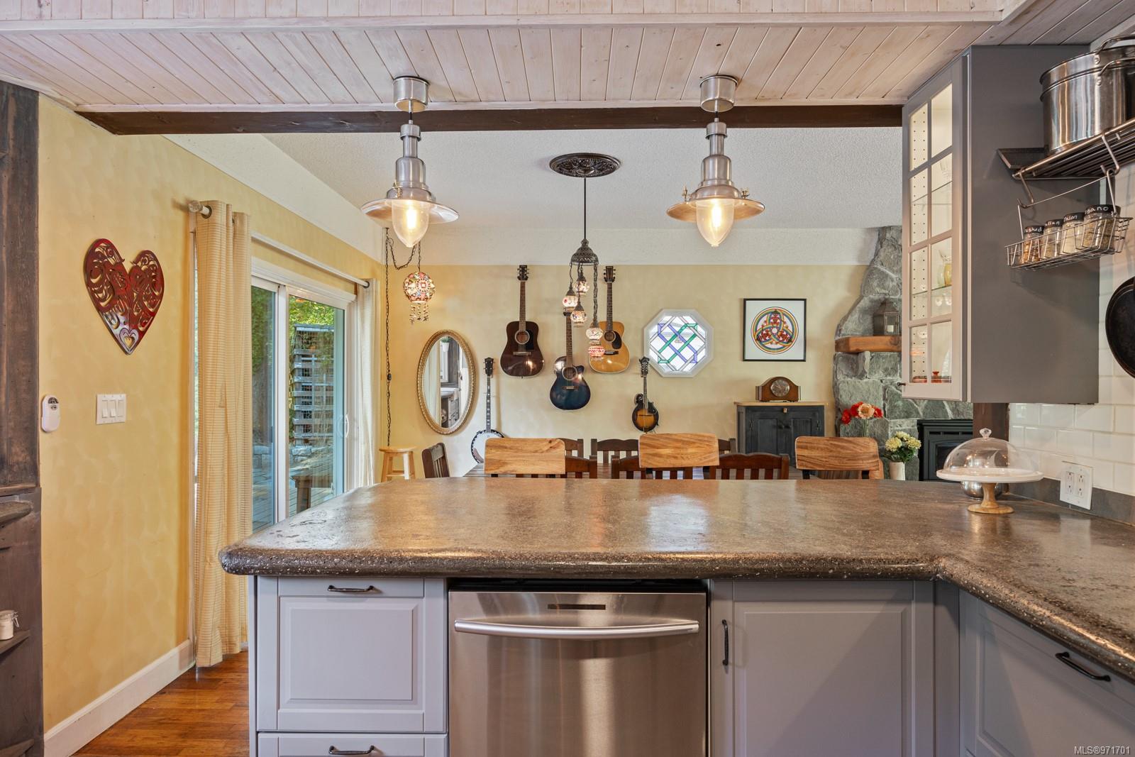Wonderful .75 acre property, with a 1947sqft home that is conveniently located in Comox and bordering Daye Park. Set back from the road, and tucked into mature trees, this home is bursting with character and charm. A welcoming front entry, leads to the living area with a custom stone fireplace. The kitchen has plenty of space for cooking & entertaining. From the kitchen, picturesque Bay Windows gaze out into a backyard oasis. A spacious dining area opens onto a large deck, perfect for relaxing. There are 3 large bedrooms & 2 baths. The top floor is perfect for creative hobbies or a playroom. 200amp service to the home, a metal roof, newer windows. Outside, the fenced yard provides privacy and includes a 466sqft detached workshop with storage loft, dog run, parking for RVs and boats, potting shed, firewood shed, custom rock work and a garden flush with blueberries and herbs. The perfect blend of West Coast x farmhouse. Don’t miss the opportunity to make this sanctuary your own.