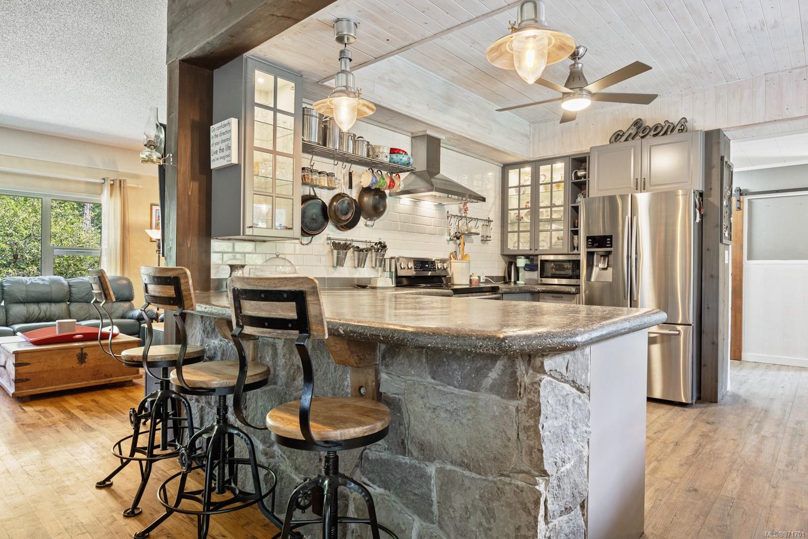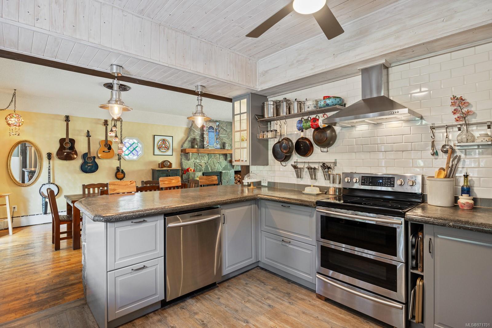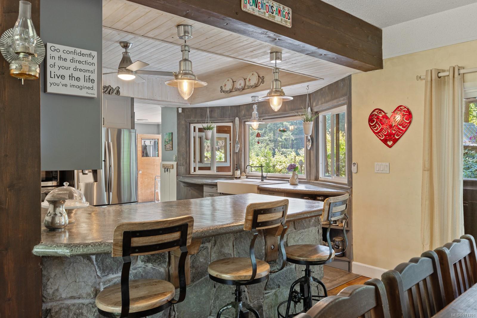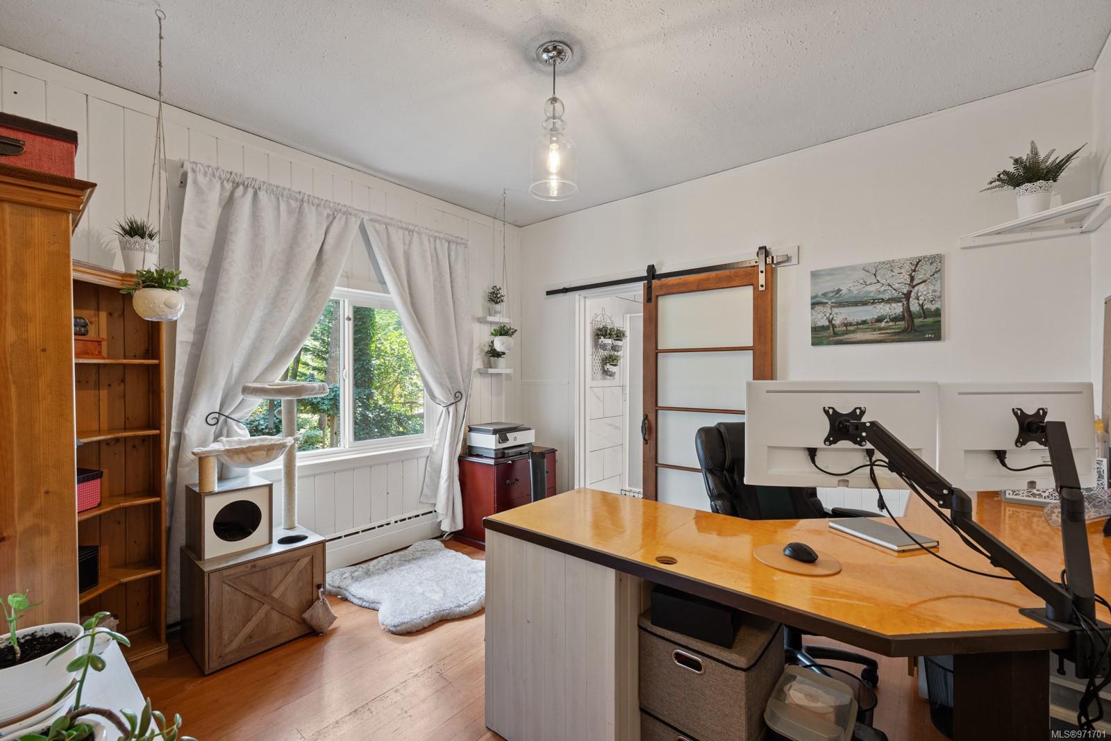 Wonderful .75 acre property, with a 1947sqft home that is conveniently located in Comox and bordering Daye Park. Set back from the road, and tucked into mature trees, this home is bursting with character and charm. A welcoming front entry, leads to the living area with a custom stone fireplace. The kitchen has plenty of space for cooking & entertaining. From the kitchen, picturesque Bay Windows gaze out into a backyard oasis. A spacious dining area opens onto a large deck, perfect for relaxing. There are 3 large bedrooms & 2 baths. The top floor is perfect for creative hobbies or a playroom. 200amp service to the home, a metal roof, newer windows. Outside, the fenced yard provides privacy and includes a 466sqft detached workshop with storage loft, dog run, parking for RVs and boats, potting shed, firewood shed, custom rock work and a garden flush with blueberries and herbs. The perfect blend of West Coast x farmhouse. Don’t miss the opportunity to make this sanctuary your own.