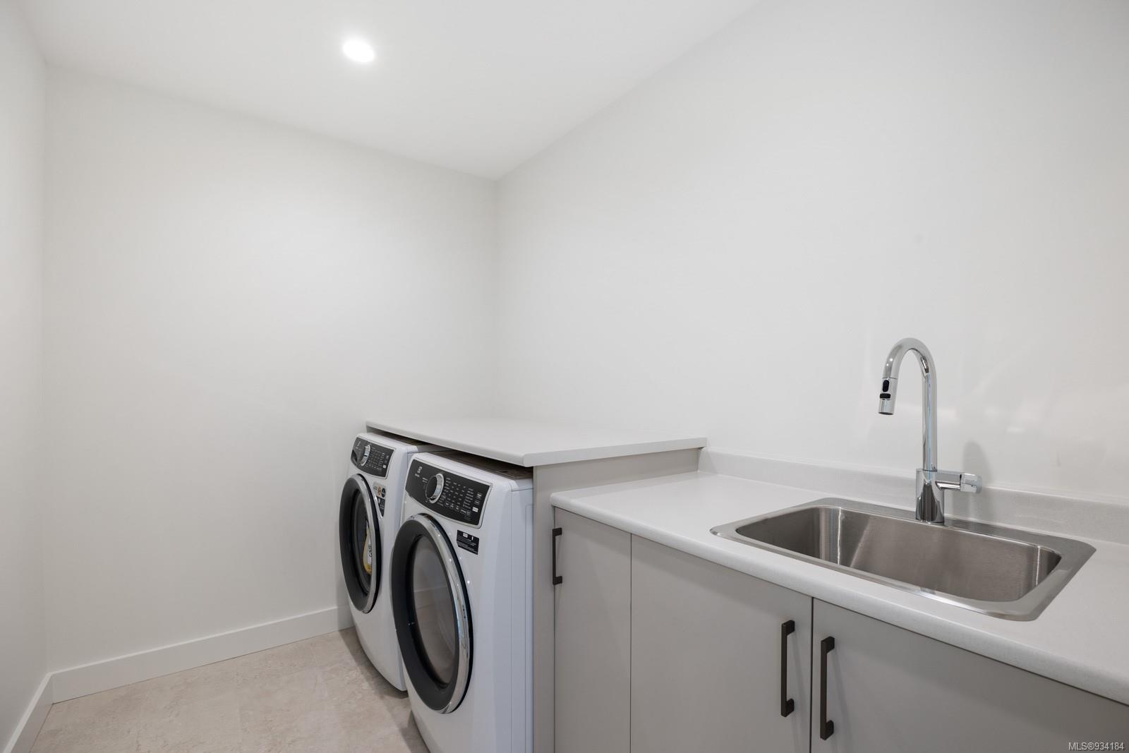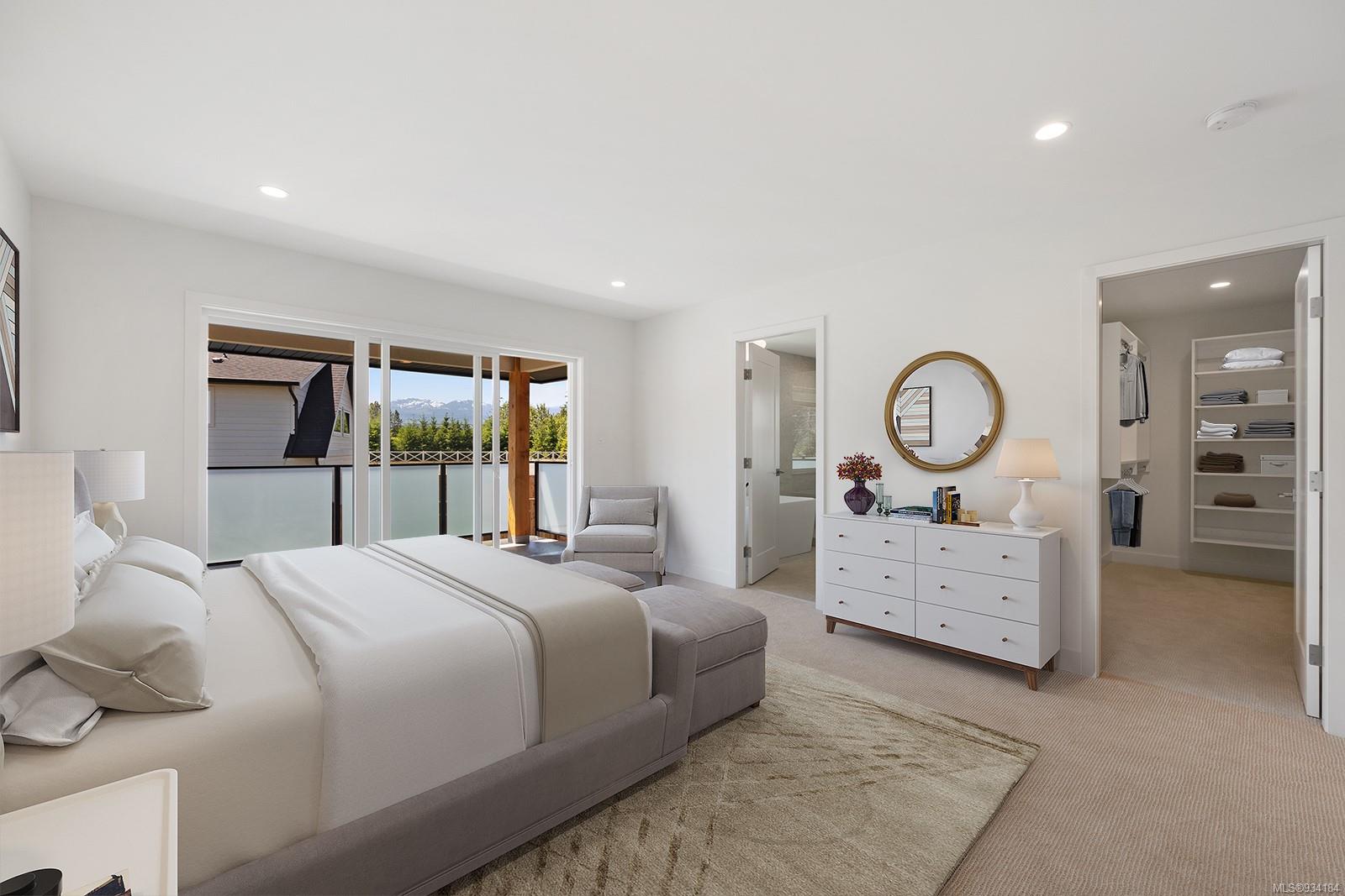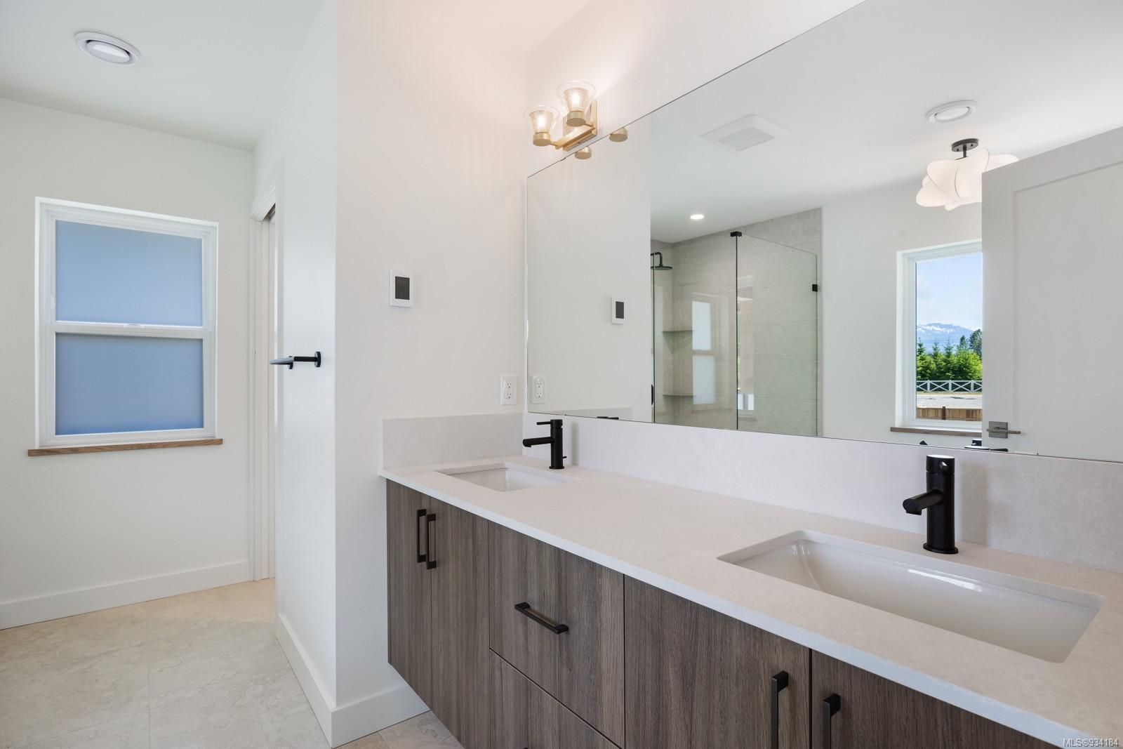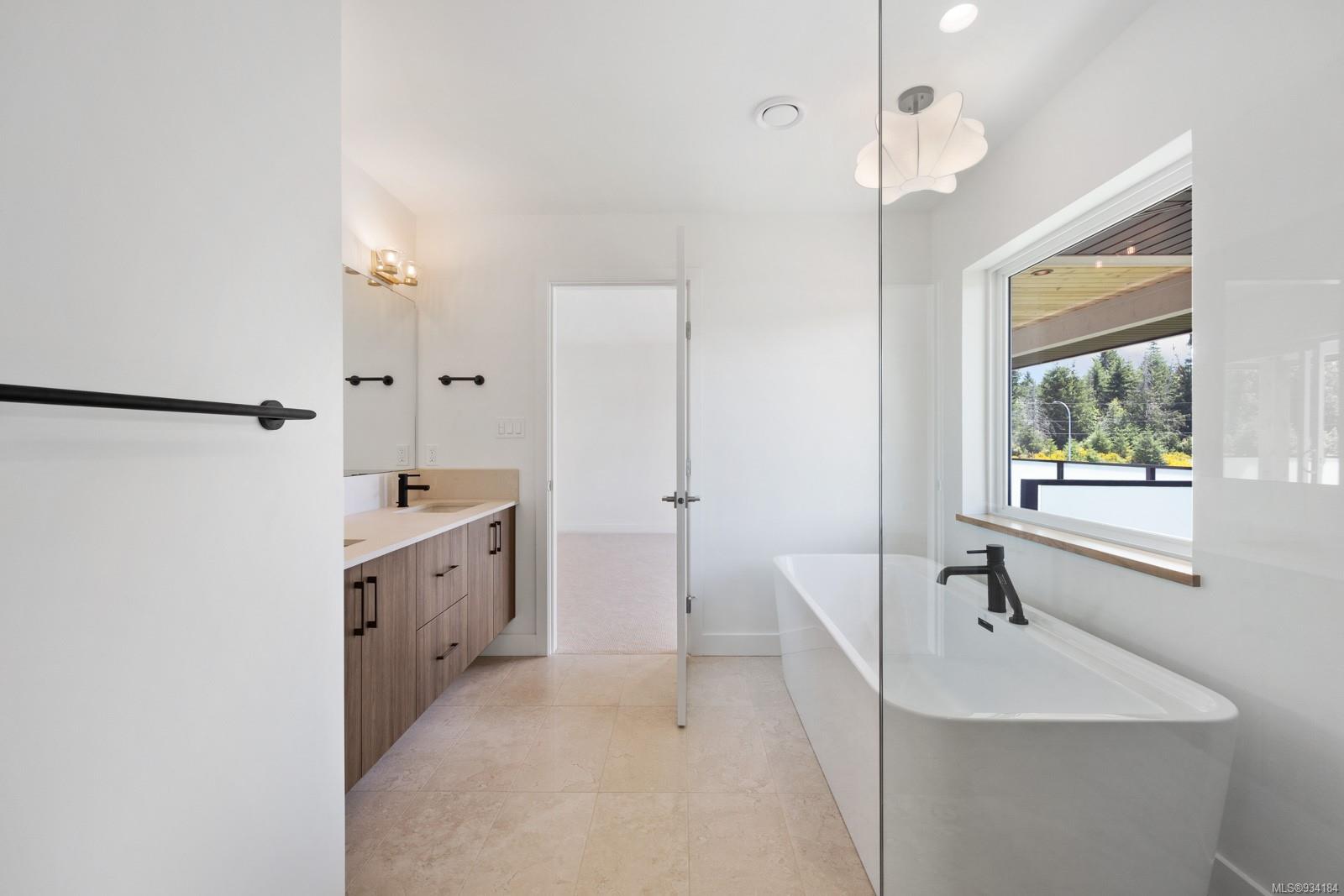 Upstairs you will find a tiled laundry room, two front facing bedrooms with coastal mountain views and Burber carpet throughout. The primary suite is large and sunny and features its own covered patio with mountain views and privacy glass. The ensuite includes heated tiles throughout, walk in tiled shower & gorgeous stand alone tub.