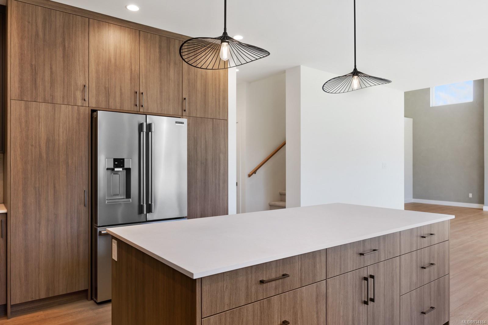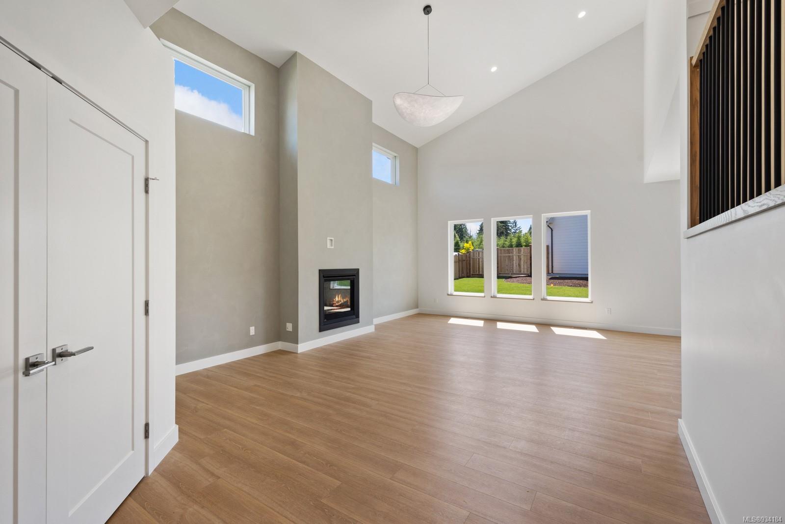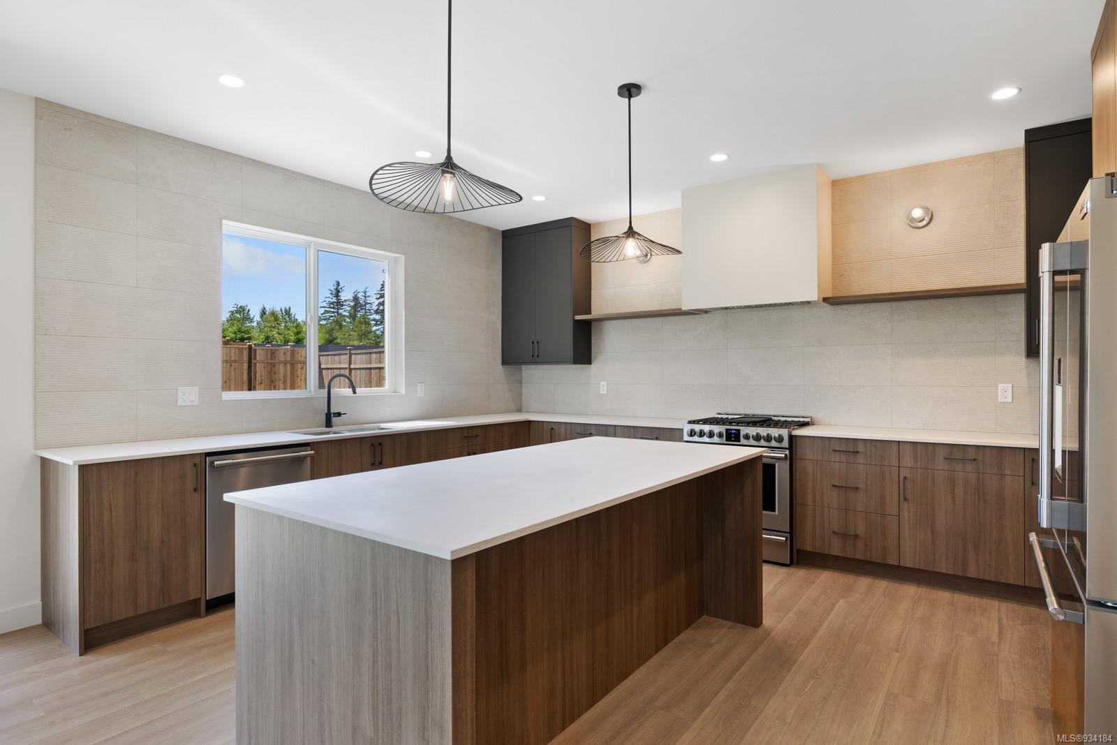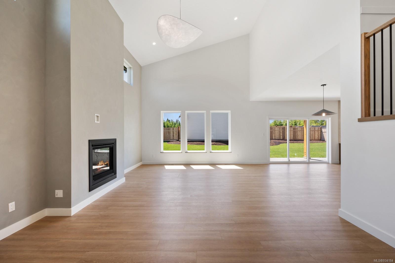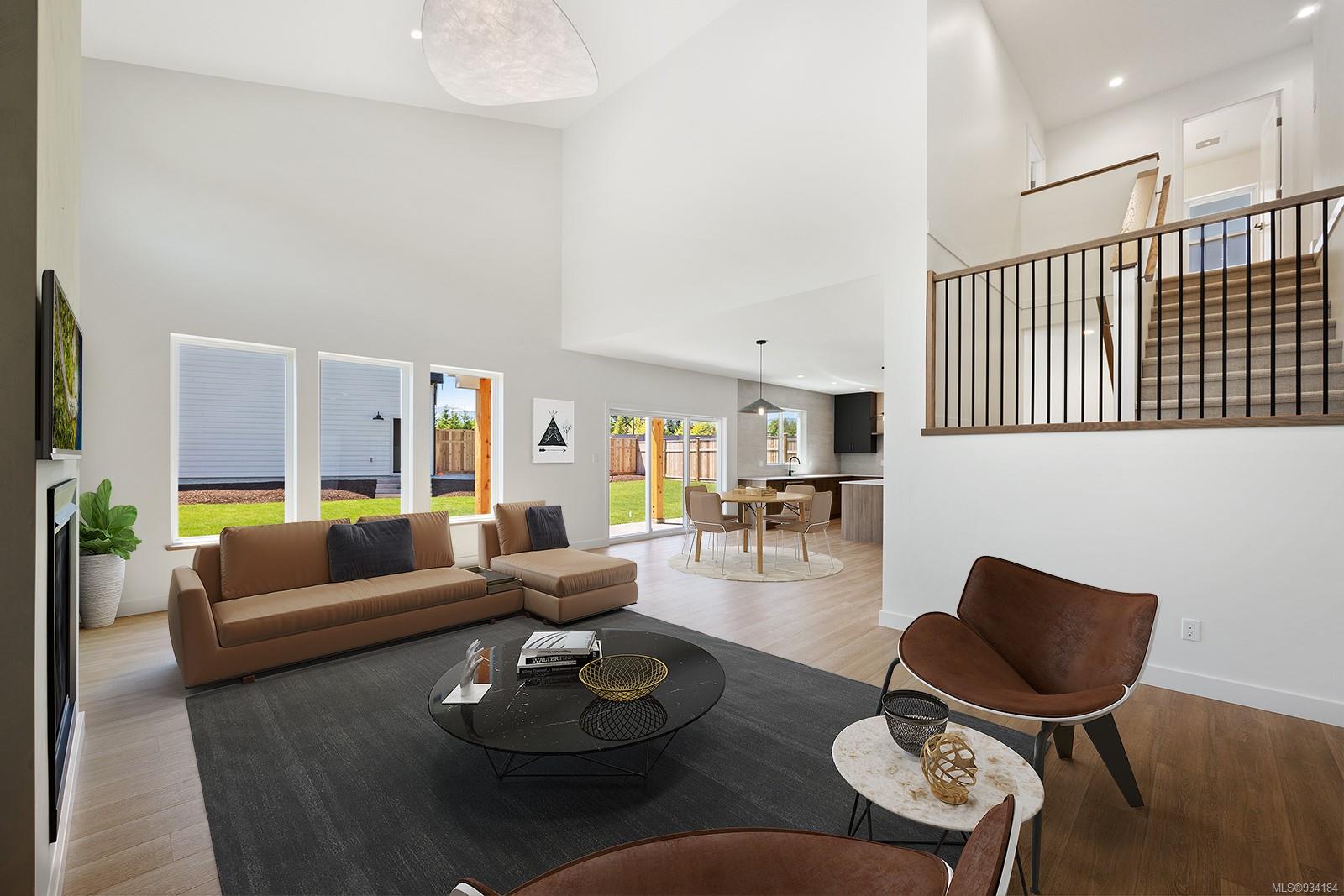 Through the main entrance you’ll find a great room with 17 ft ceilings and lime paint feature wall with gas fireplace. Vinyl plank flooring throughout provides a family friendly elevated feel. Behind the french doors lies a large den or office space and the open concept dining area includes slider doors to the spacious half covered half sunlit deck outside. The modern kitchen features quartz countertops, a stainless steel appliance package and countertop to ceiling tile backsplash. Access to the garage is from the main floor.