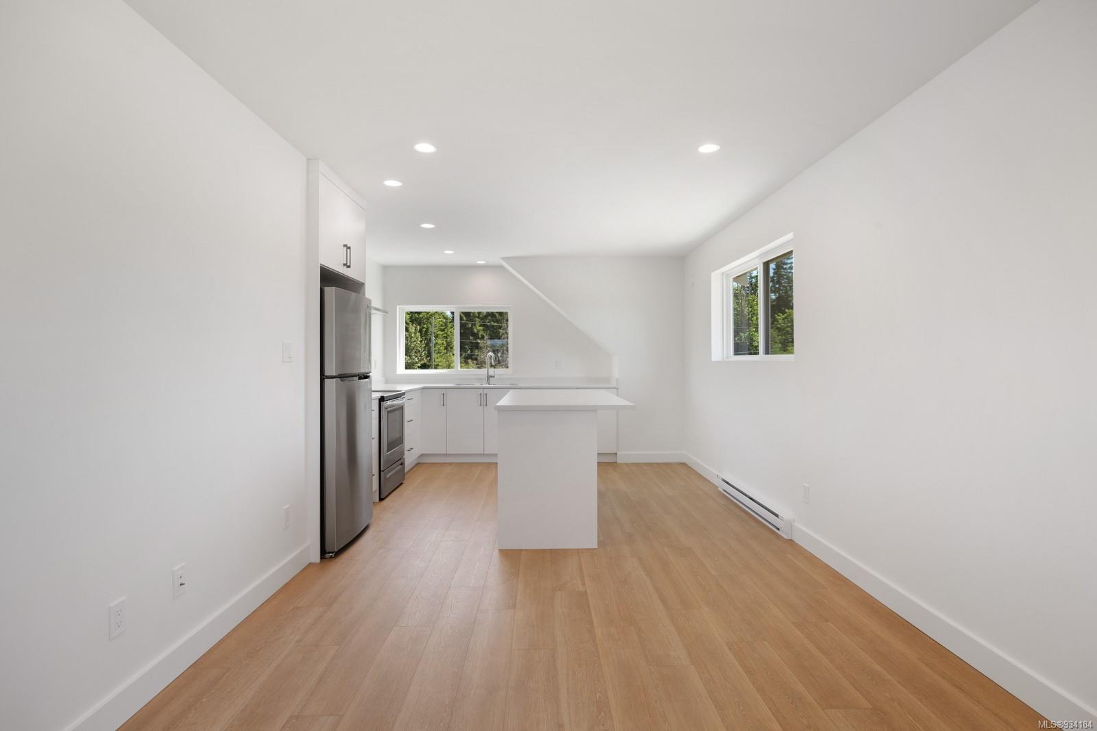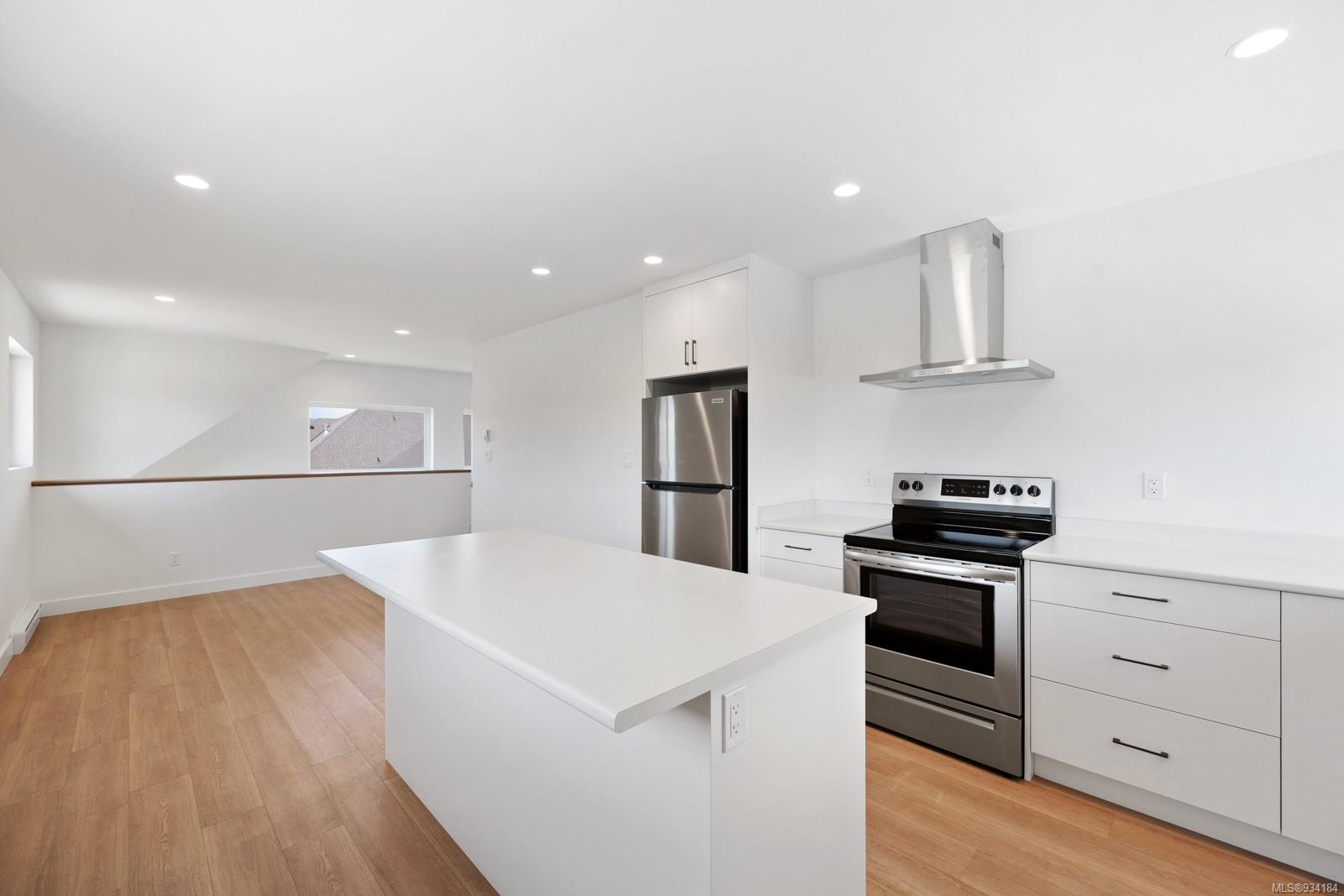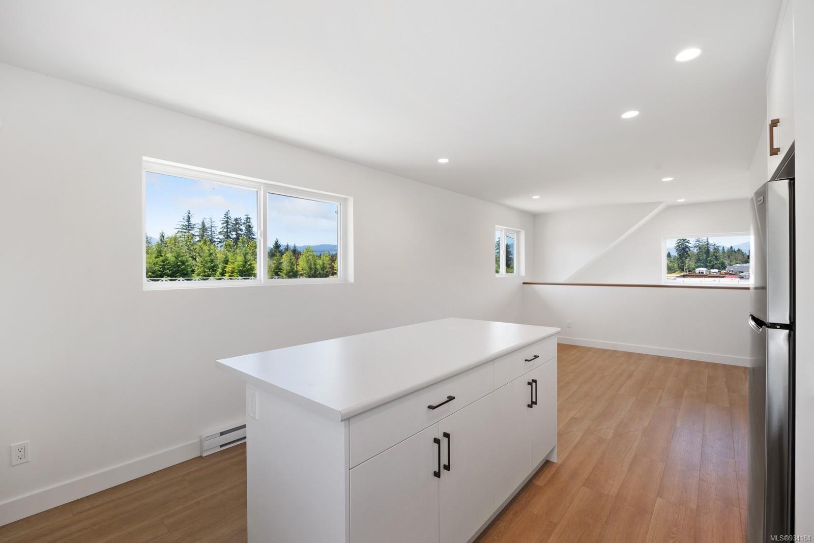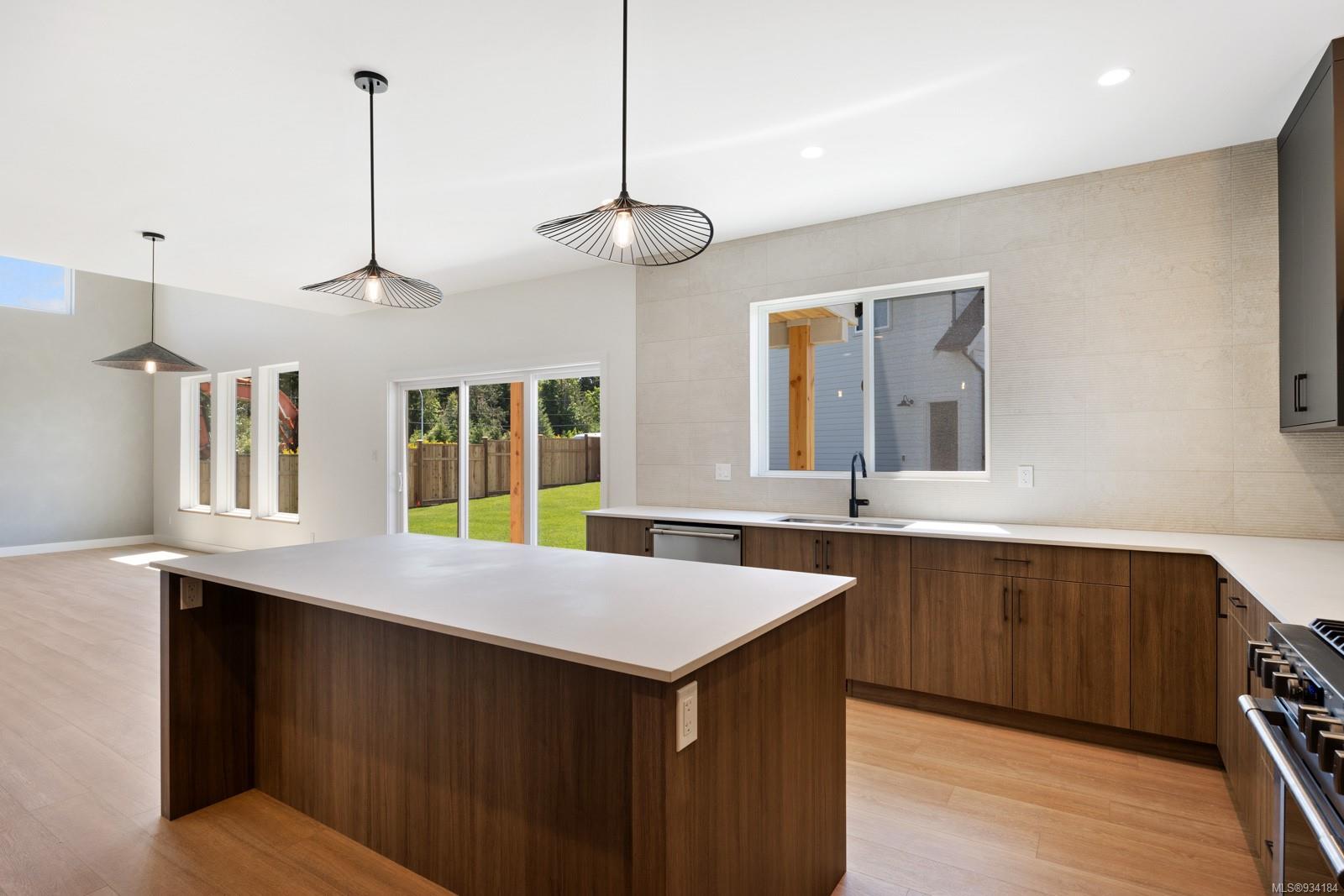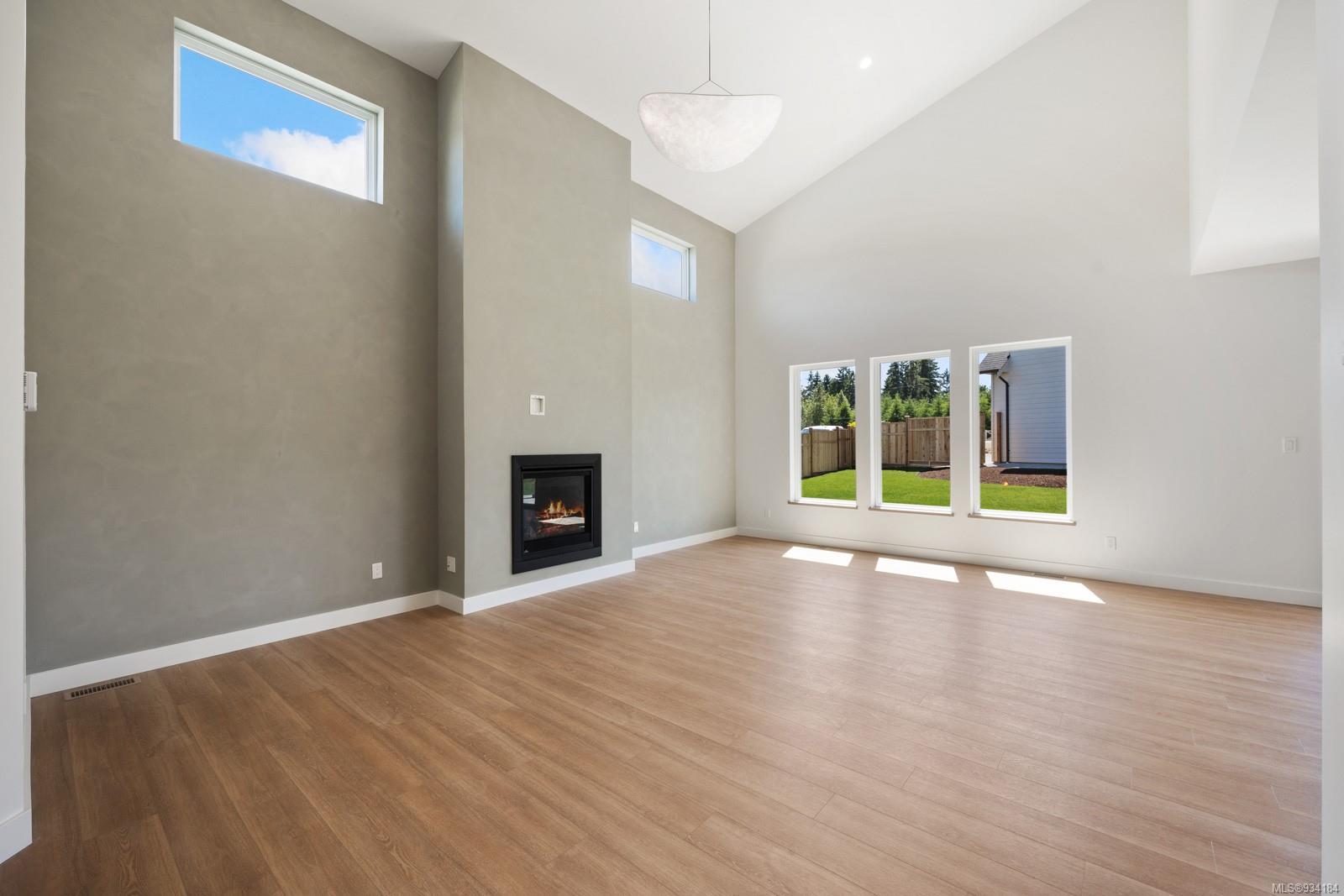 Through the main entrance you’ll find a great room with 17 ft ceilings and lime paint feature wall with gas fireplace. Vinyl plank flooring throughout provides a family friendly elevated feel. Behind the french doors lies a large den or office space and the open concept dining area includes slider doors to the spacious half covered half sunlit deck outside. The modern kitchen features quartz countertops, a stainless steel appliance package and countertop to ceiling tile backsplash. Access to the garage is from the main floor.