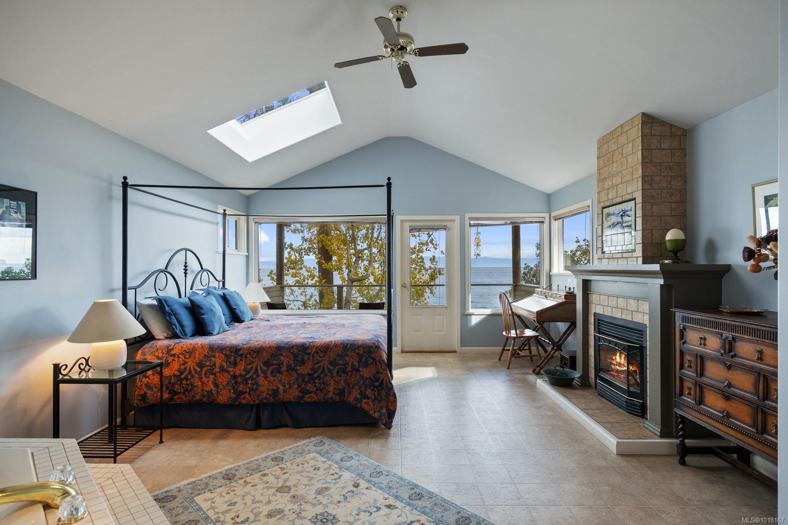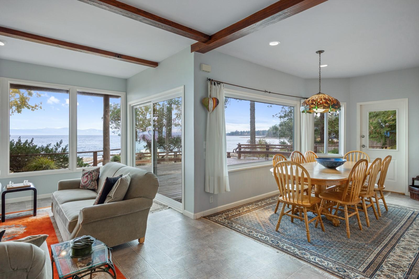 Set on over half an acre of walk-on waterfront, this thoughtfully designed 2,105 sq ft home blends quality craftsmanship with comfort and a true connection to its coastal surroundings. Every detail has been considered for easy island living and effortless gatherings. The spacious living room, open kitchen, and sun-filled dining area flow together beautifully, all showcasing unobstructed ocean and mountain views. Three well-appointed bedrooms, including two on the main level with private outdoor access and ensuites, provide flexibility for family and guests. The upper-level suite is a private sanctuary with a jacuzzi, fireplace, sitting area, and balcony overlooking the water.
