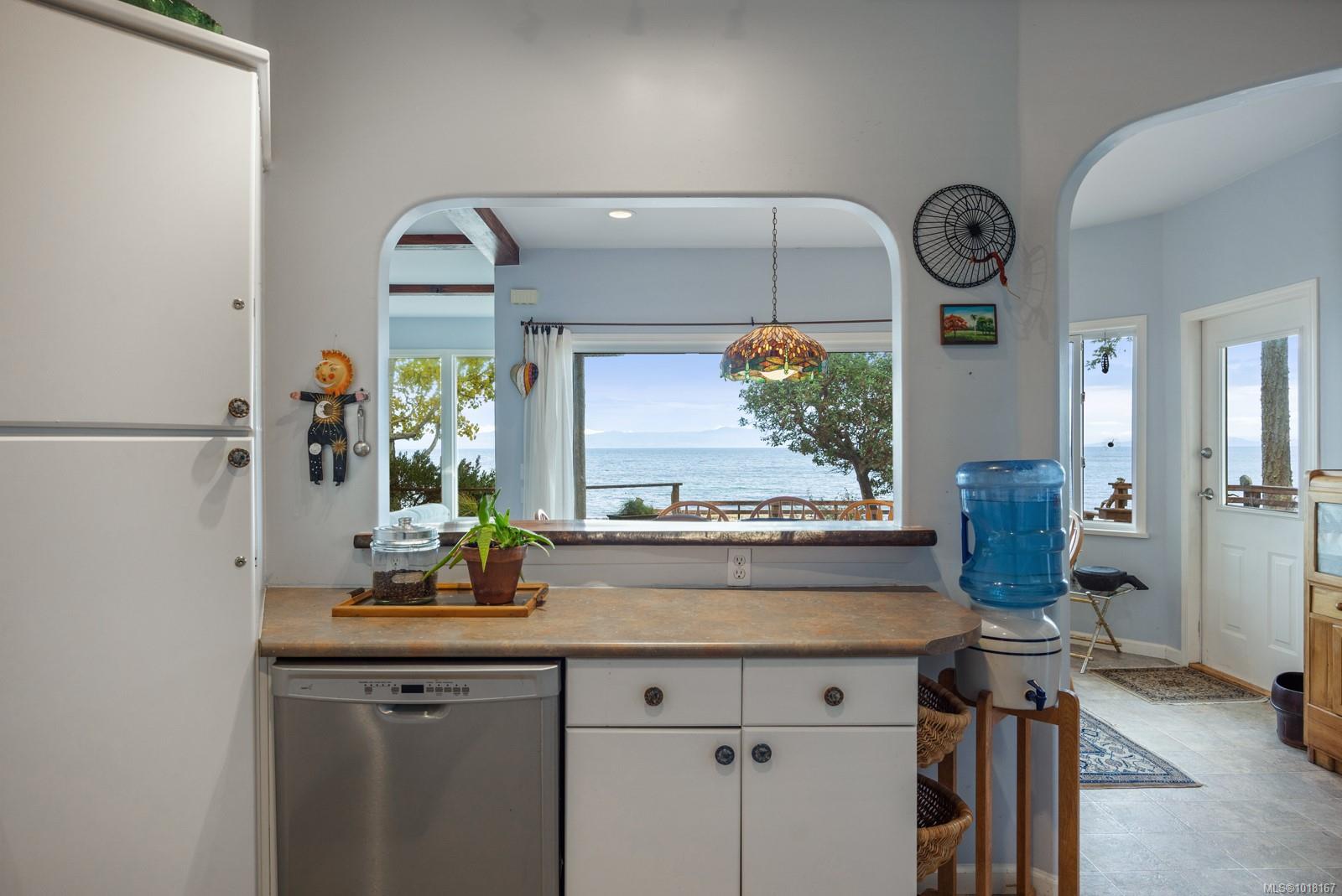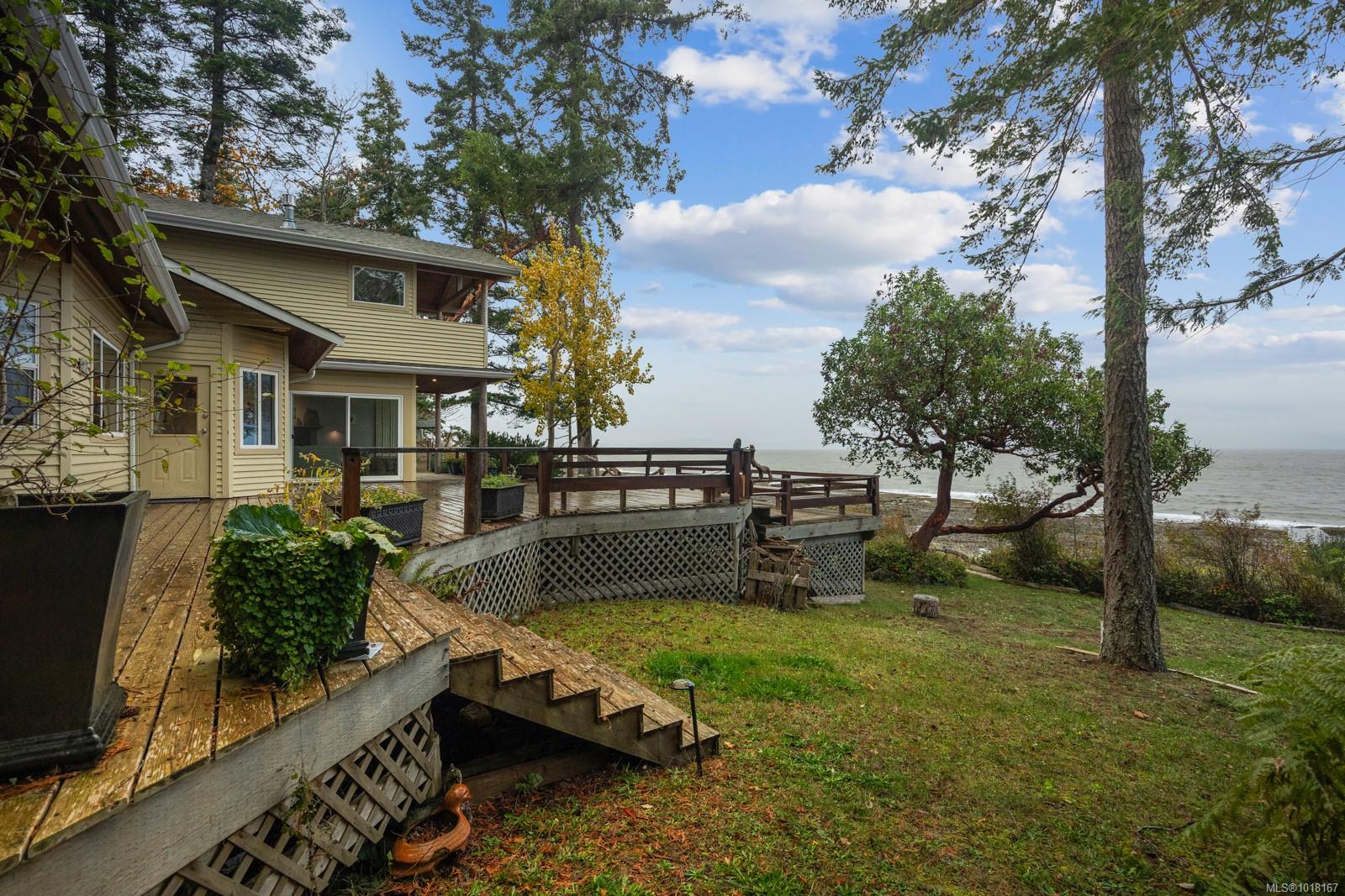 A huge two-tiered almost new cedar deck extends the living space outdoors, offering the perfect setting for dining, entertaining, or simply watching the tides change. Infrastructure is solid and reliable, featuring a deep well, three cisterns, a well maintained septic system, three propane tanks, and ample storage buildings. Recent upgrades include the driveway, fencing, balcony beams, hot water tanks, and lifetime-warranty sliding glass doors.